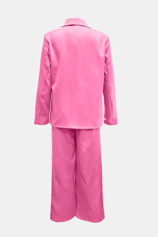 Contrast Trim V-Neck Top and Pants Set Plus Size