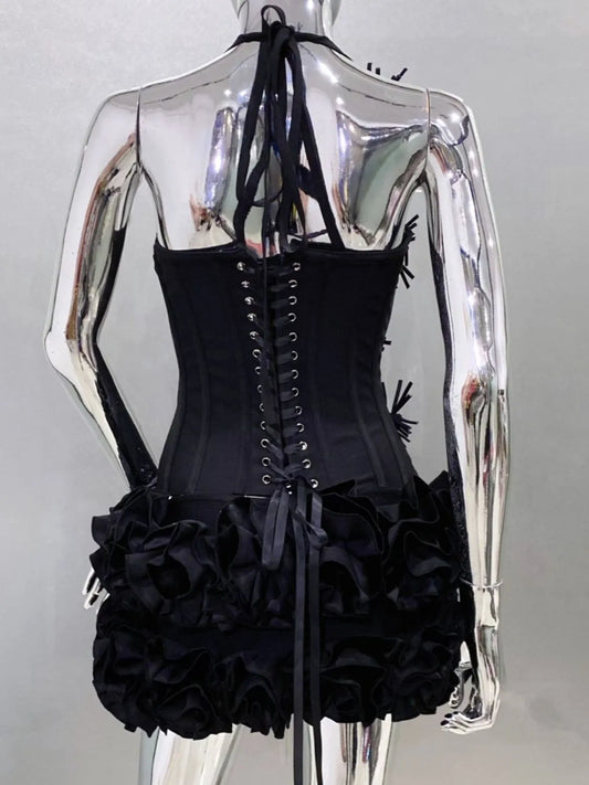 Zipper Pocket Jacket Lantern Mini Skirt Set