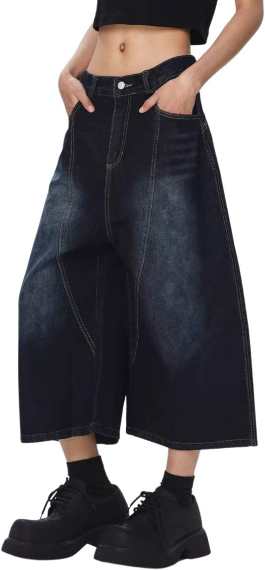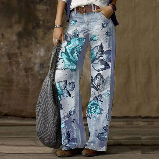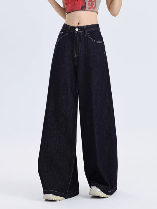 Stepped Waist Raw Hem Rolled Straight Jeans