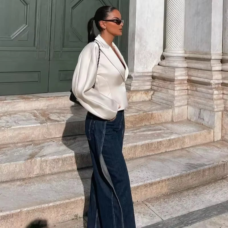 Elevate your autumn wardrobe with this elegant white slim-fit coat, designed for a refined silhouette. Featuring a deep lapel and a single button closure, it combines classic tailoring with modern minimalism. The long sleeves and sleek cut provide warmth and sophistication, while the stylish fake pockets add subtle charm. Perfect for any occasion, this 2025 fashion piece balances timeless elegance with contemporary flair.