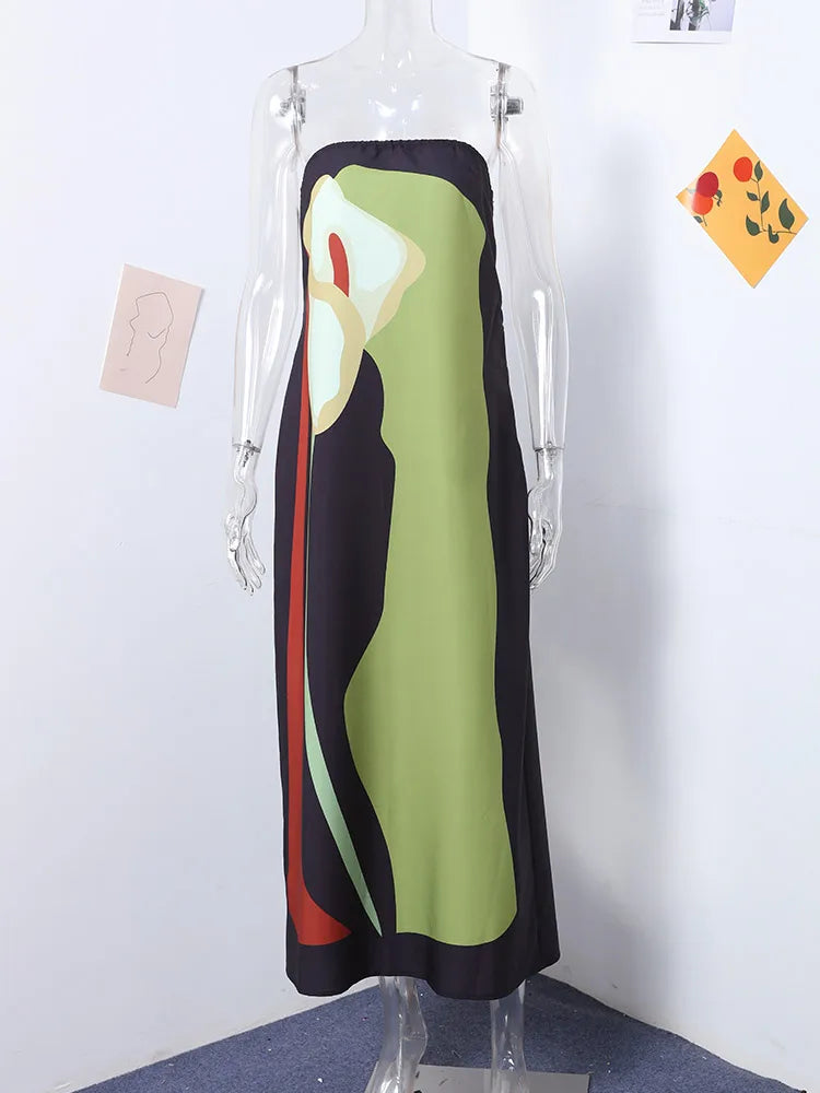 Turn heads this summer with our daring strapless long dress, featuring an elegant patchwork design and a bold backless cut. This sleeveless floral maxi dress combines sophistication with a playful edge, perfect for holiday parties or beach days. Embrace effortless style and confidence wherever you go.
