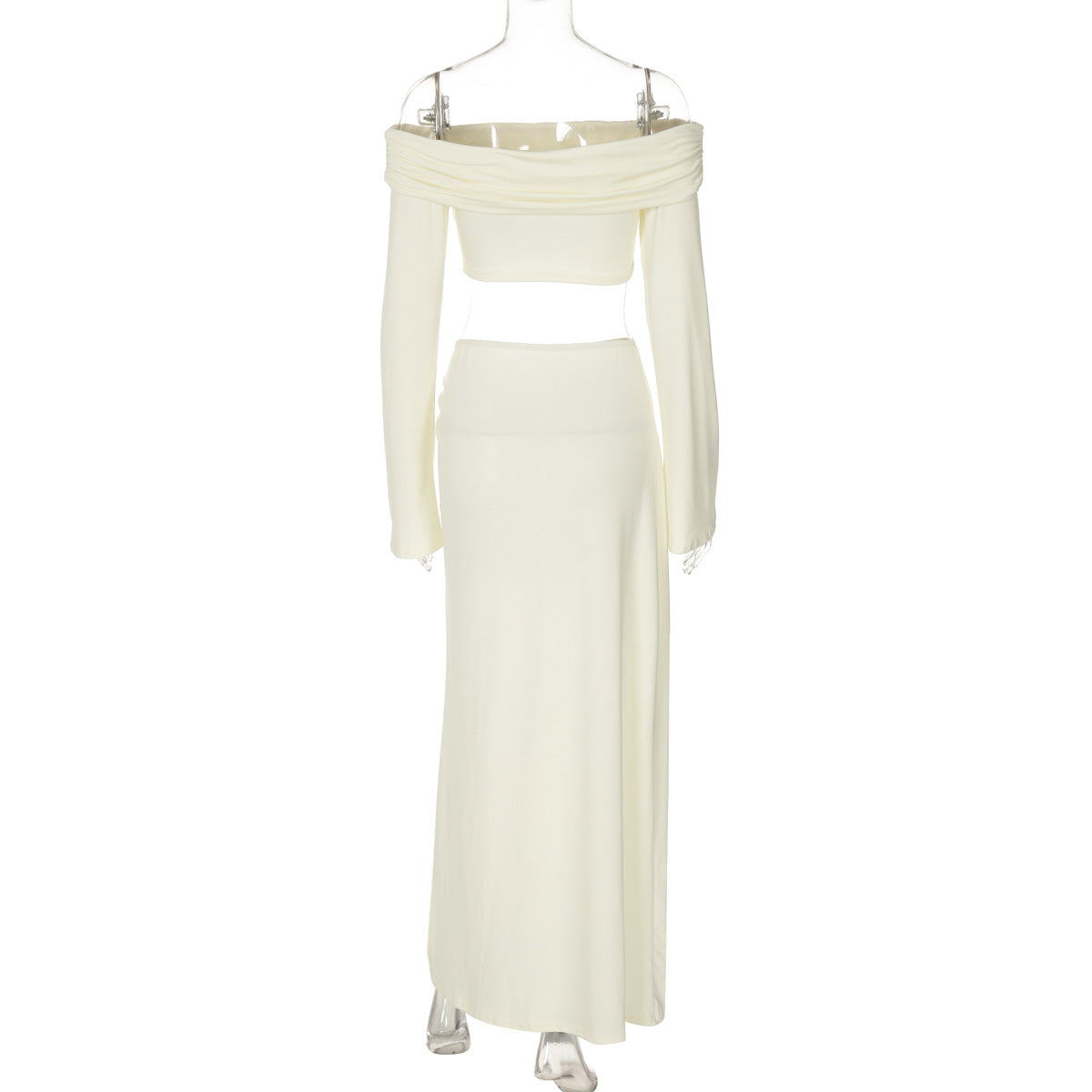 Embrace effortless style and comfort with this two-piece beach skirt set. Featuring a flattering high split and slim fit, the bohemian design highlights your natural silhouette while allowing ease of movement. The off-the-shoulder top adds a touch of elegance perfect for holiday wear. Ideal for sun-soaked days and seaside strolls, this solid-colored set combines fashion and comfort for your ultimate beach getaway.